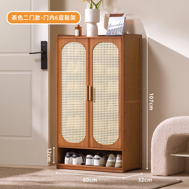 66cm Rattan Design 2 Door Bamboo Shoe Cupboard